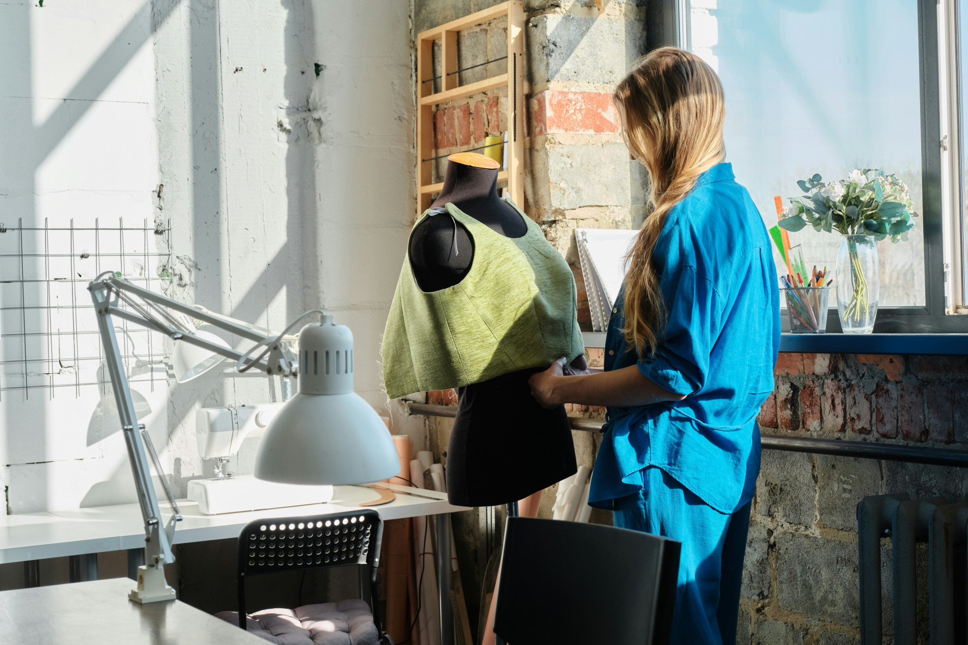 Ett långt bord kan delas upp i sektioner med varsin arbetsplats, och rullbara förvaringsmoduler gör det enkelt att flytta runt när det är dags för en ny aktivitet. På så sätt kan rummet snabbt växla från syateljé till modellverkstad – utan att det känns rörigt.